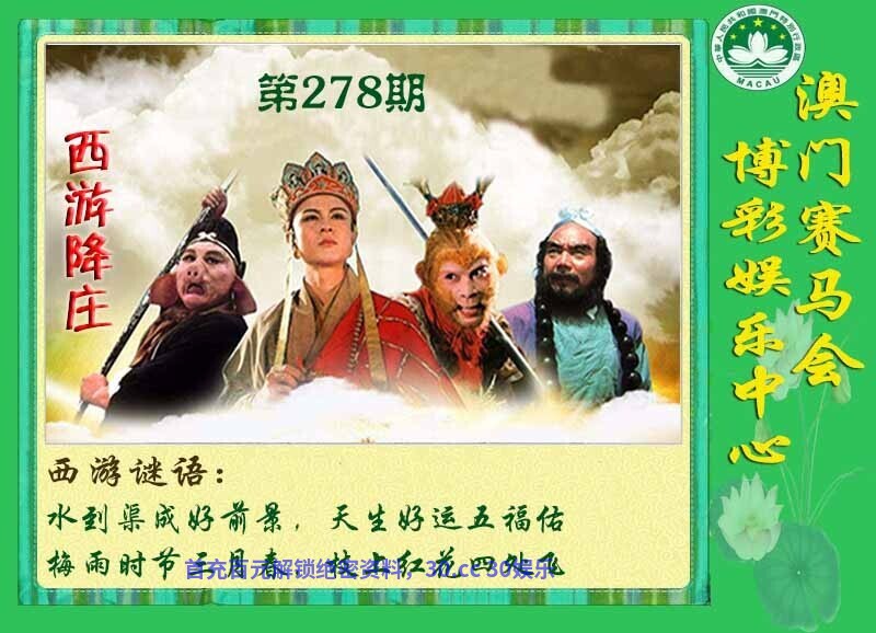 【西游降庄解传真】278期:今期生肖二四开,二字来头七相送。一字一句要留意,看好红波在今期。十二生肖个个知,六合在前取投机。二七得三六相加,大王去找美人码。 【西游降庄主看】马虎龙羊鼠蛇 【西游降庄主看】绿红波 【西游降庄主看】大数+双数 |