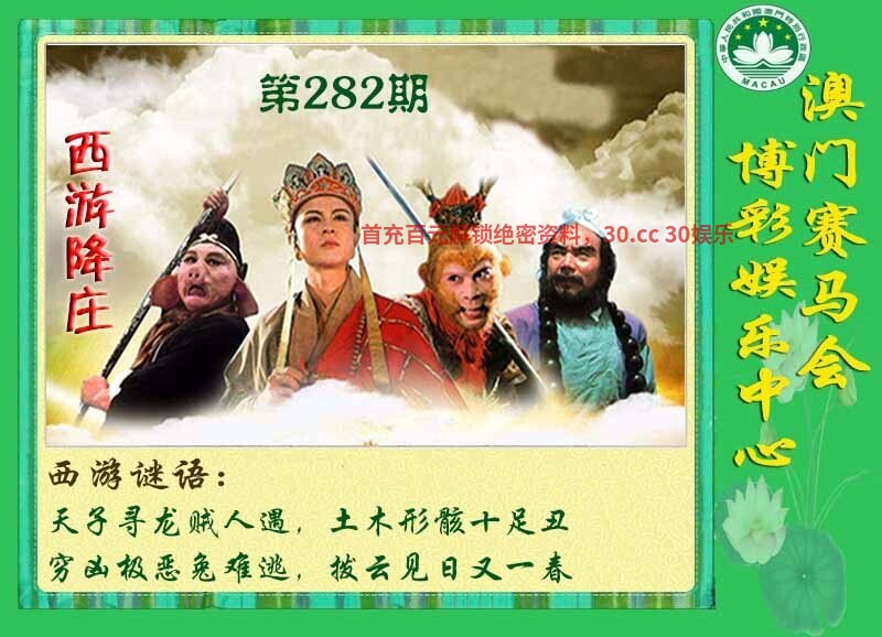 282期西游记: 天子寻龙贼人遇,土木形骸十足丑 穷凶极恶兔难逃,拨云见日又一春 解析:天子寻龙贼人遇,土木形骸十足丑:明肖龙,十,10猴排行09鸡,穷凶极恶兔难逃,拨云见日又一春:凶,指凶丑鼠牛虎猴狗猪,云,指云肖猴鸡狗 综合七肖:龙鸡羊蛇猴牛虎 |
